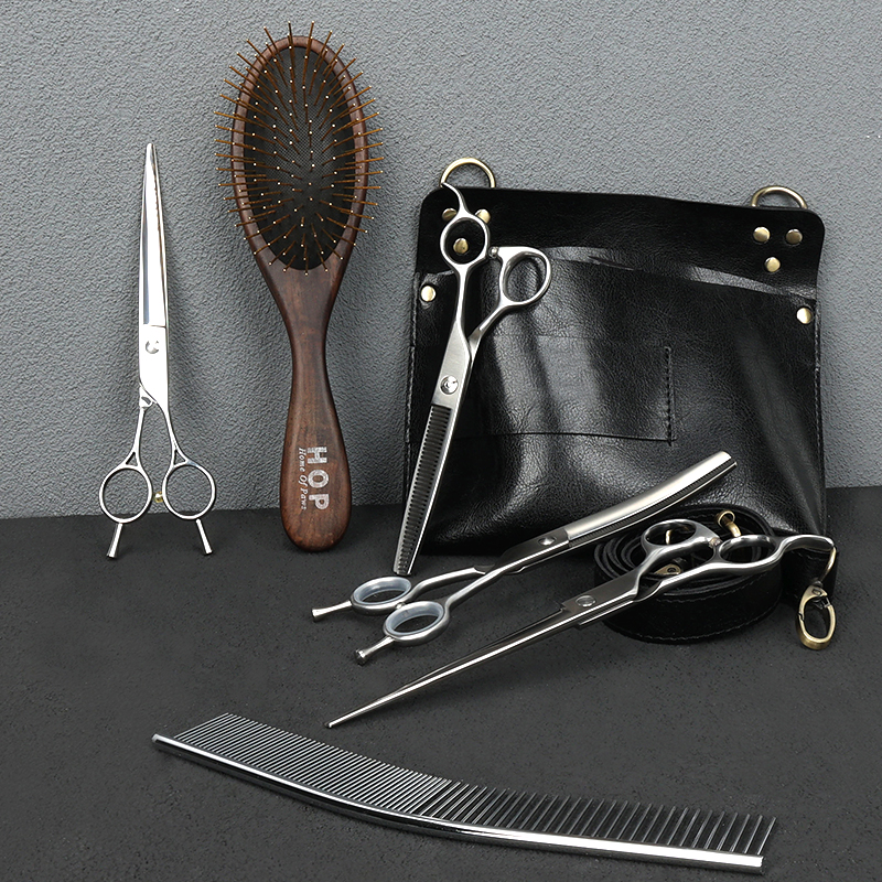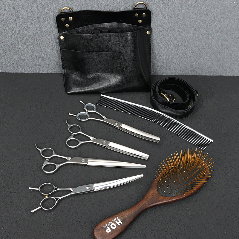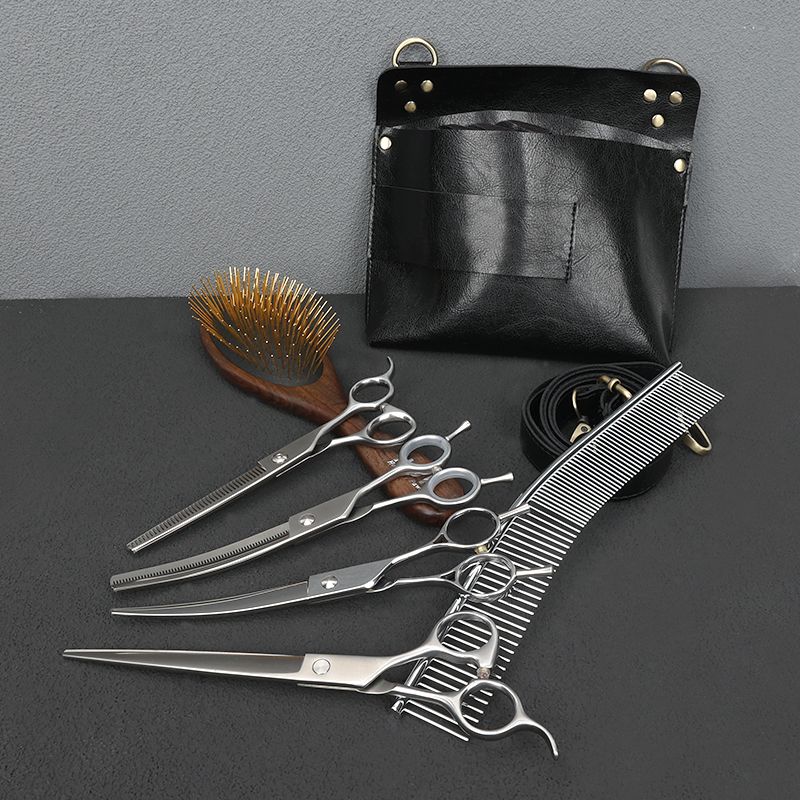 Professional Groomers 7inch 440c Stainless Steel Straight Curved Thinning Pet Dog Hair Grooming Scissors Kit