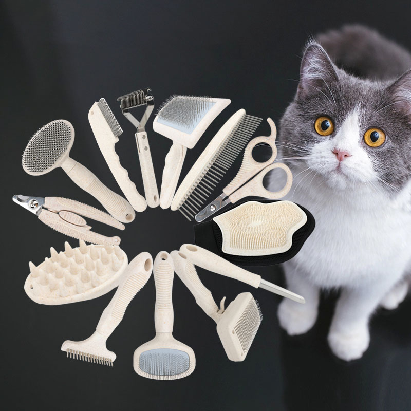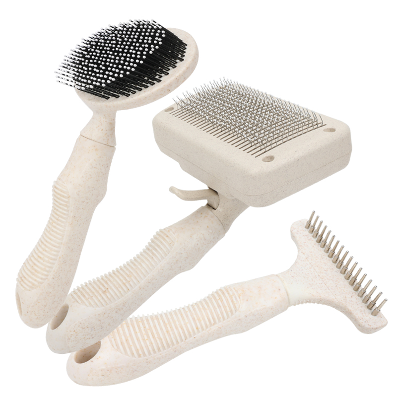 Custom Logo Biodegradable Wheat Straw Dog Dematting Rake Comb Cat Pet Hair Slicker Grooming Brush
