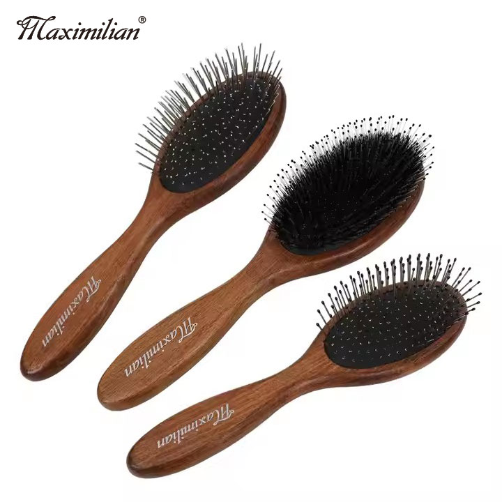 Custom logo Wooden Hair Brush With Wide Tooth Nylon Mix Boar Bristle Hair Detangling Comb Dog Massager Brush
