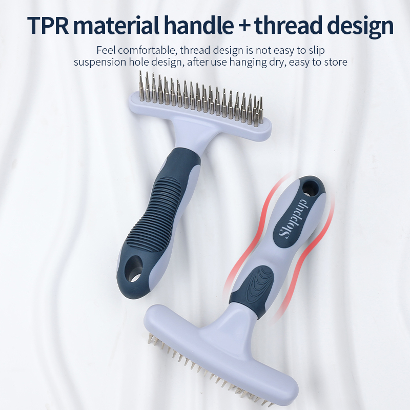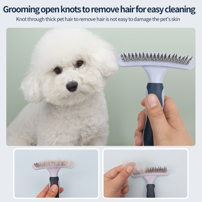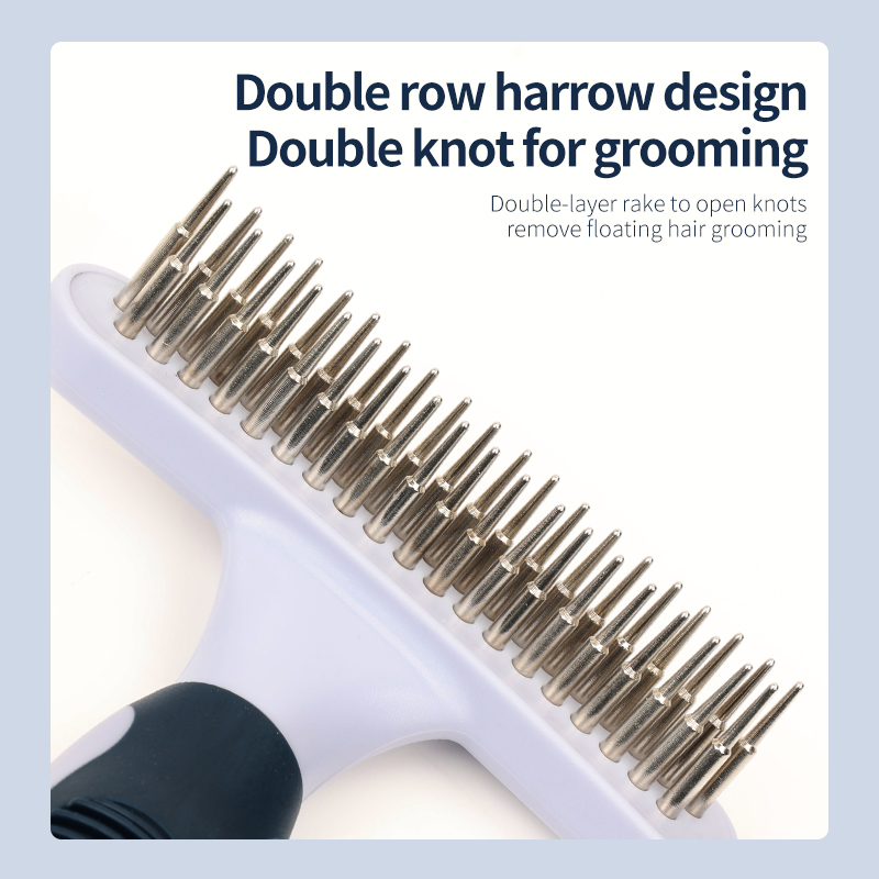 Factory Wholesale Custom Logo Two Rows Teeth Cat Hair Cleaning Dog Rake Comb Pet Grooming Products