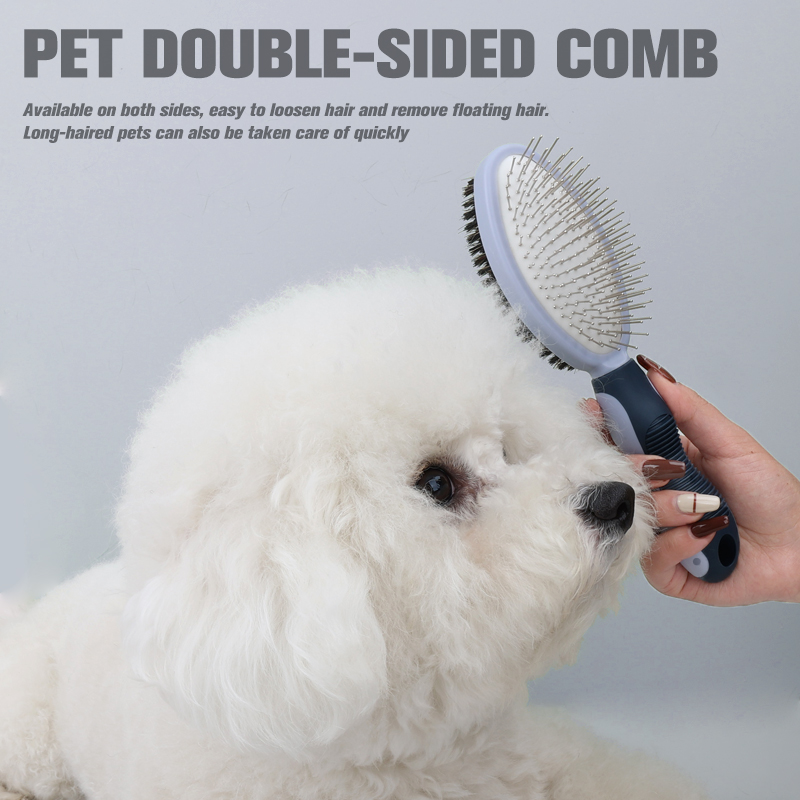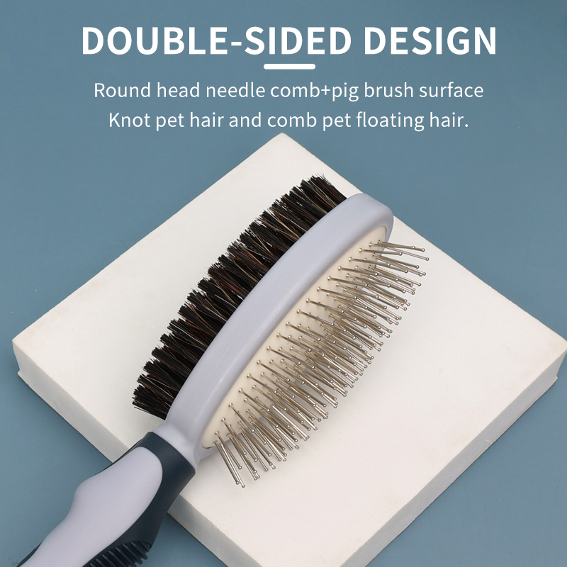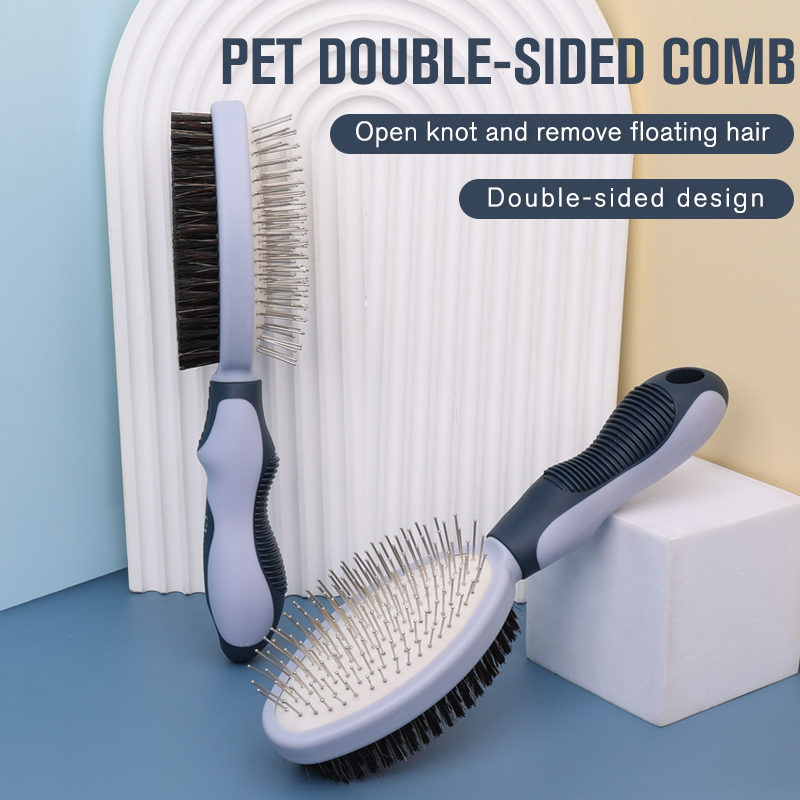 Factory Wholesale Custom Logo Double Sided Cat Hair Remover Massage Brush Dog Pet Grooming Brush
