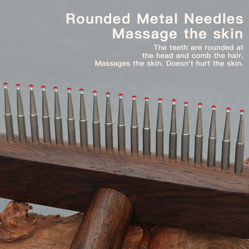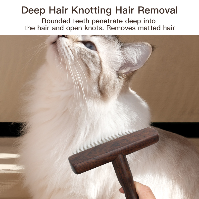 EBONY Wood Open Knot Comb Hair Double Row Design Sturdy Durable Pet Cat Nail Rake Brush for Dogs