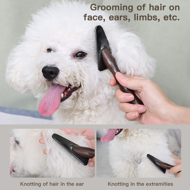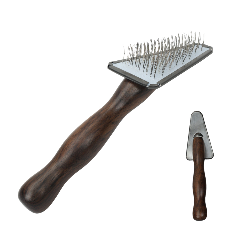 Pet Hair Grooming Triangle Head Face Ebony Wood Slicker Brush for Dog and Cat
