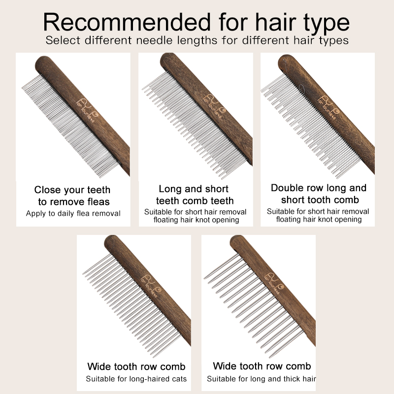 Five Style Wooden Handle Long Short Teeth Cat Needle Flea Comb Stainless Steel Dog Pet Grooming Hair Comb