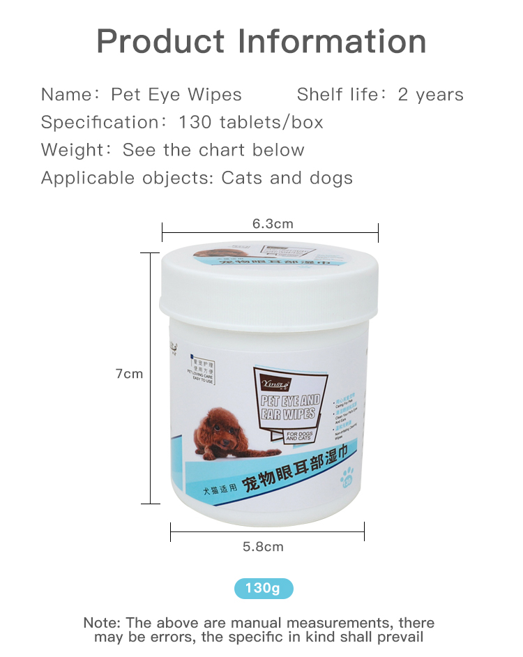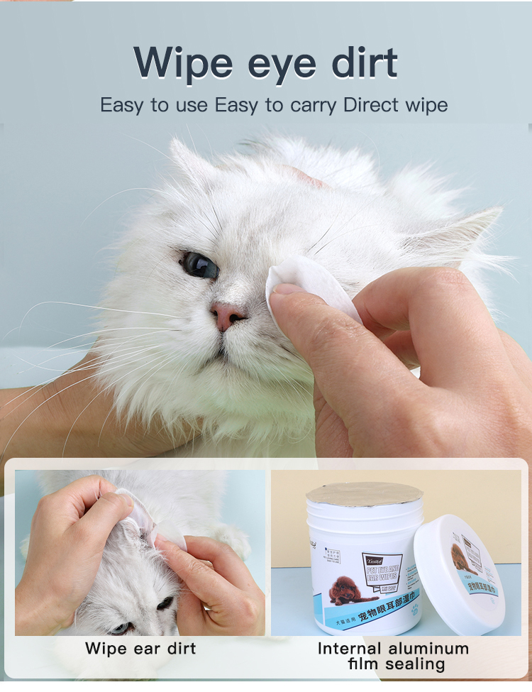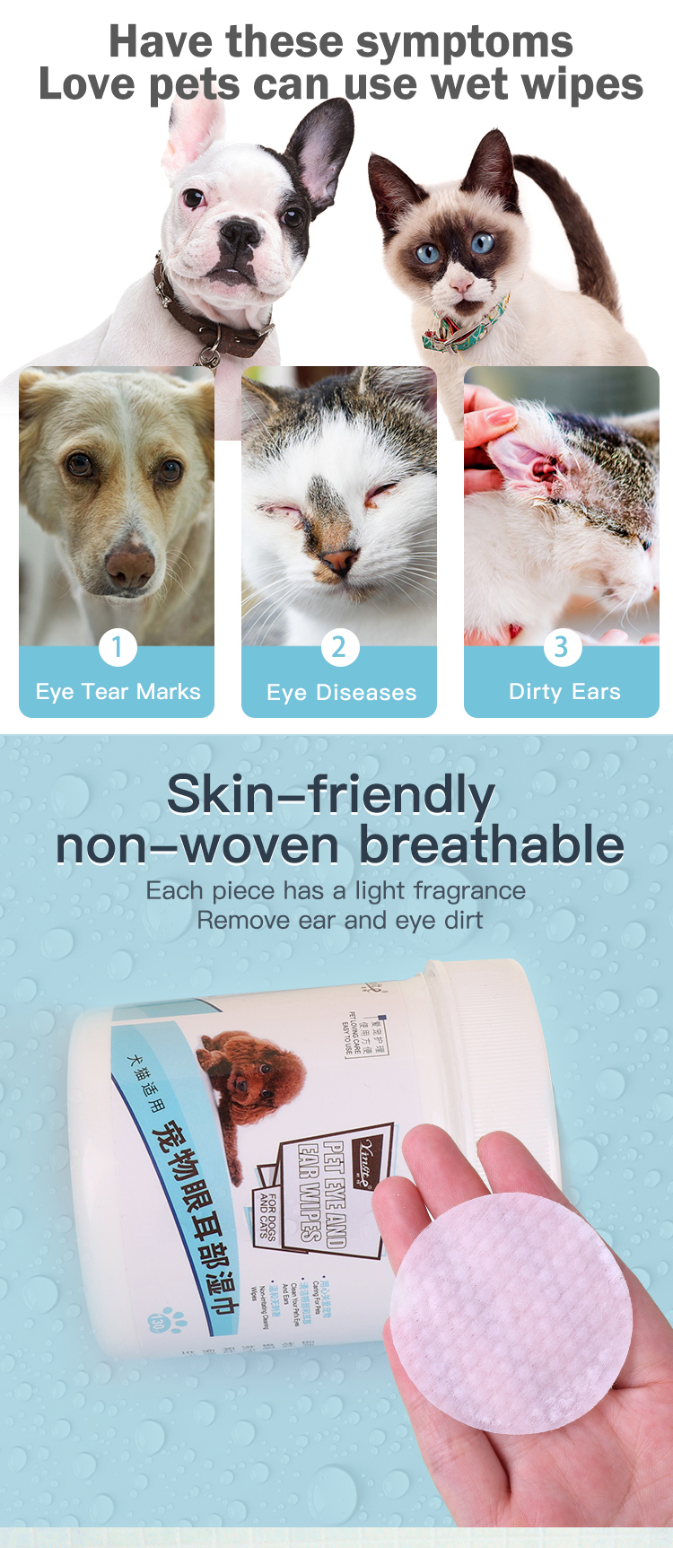 130pcs/box Wholesale Custom Logo Disposable Non-woven Fabric Cat Ear Cleaning Wipe Pet Eye Wet Wipes for Dog